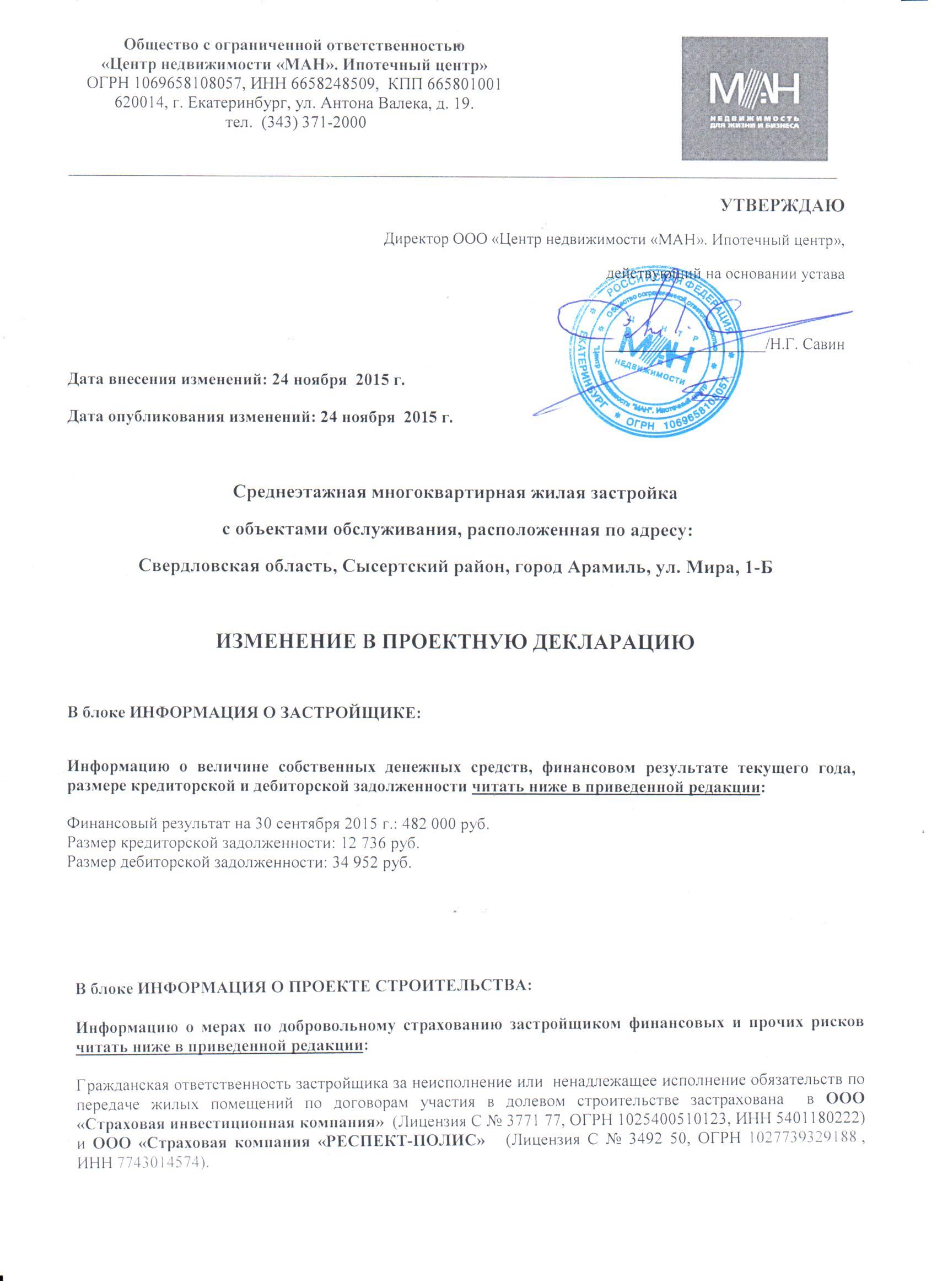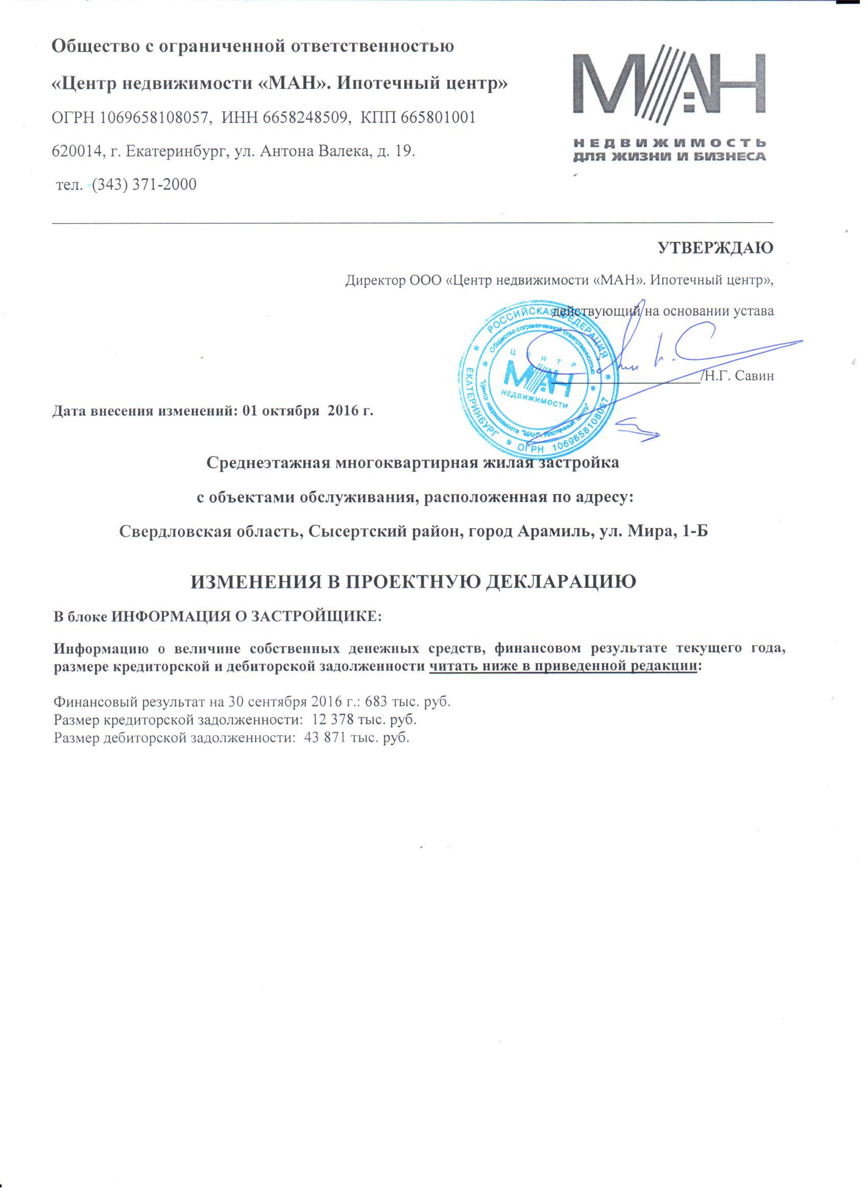 1. 10-ти этажный жилой дом со встроенно-пристроенным блоком обслуживания по пр. Победы, 41а 1 этап - жилая часть. Введен в эксплуатацию 13 января 2010г. Фундаменты- ж/б плиты, стены -кирпич, перекрытия- сборный ж/б, окна - пластик, кровля - рулонная, крышная газовая котельная. Количество квартир -80: в том числе: 1-комнатных -32; двухкомнатных - 32; трехкомнатных- 16. Дом сдан с отделкой: штукатурка стен, стяжка полов. Разрешение на ввод объекта в эксплуатацию № RU663130002006001-02.