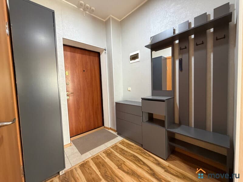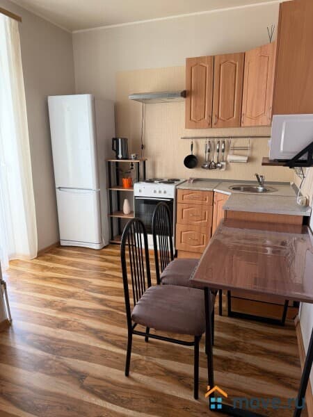 В квартире выполнен качественный евроремонт, в наличии вся необходимая мебель как в комнате, так и на кухне. На кухне установлены холодильник и плита, в комнате — удобный диван и шкаф. Ванная комната оборудована современной сантехникой и ванной. Также есть стиральная машина и телевизор, необходимая бытовая техника и всё для комфортного проживания. Одним словом, квартира свободна и готова к заселению.