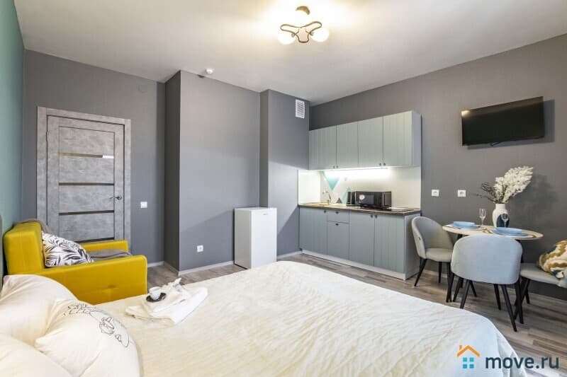 Компания BeGuest предлагает снять студию посуточно в Екатеринбурге с лоджией на Начдива Васильева 34. Рассчитана на размещение до 3 гостей и оснащена двуспальной кроватью и раскладным креслом.