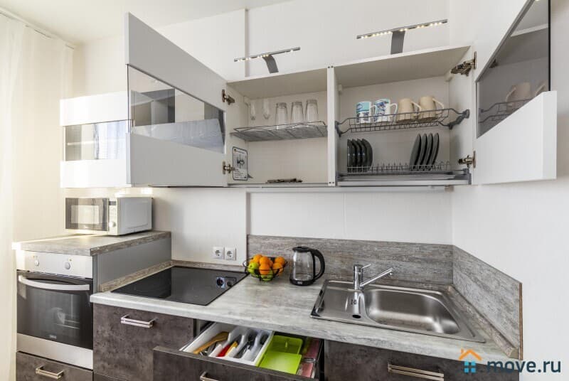 * Полноценная кухня (варочная панель, микроволновка, чайник)