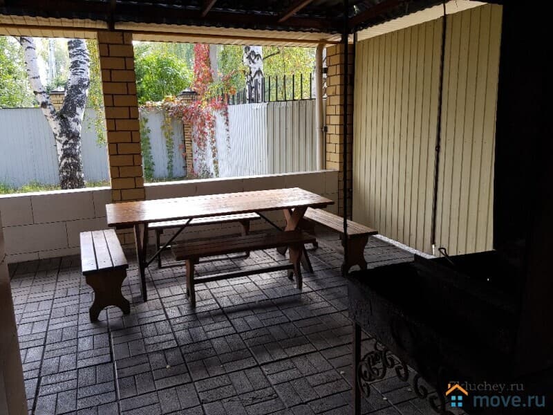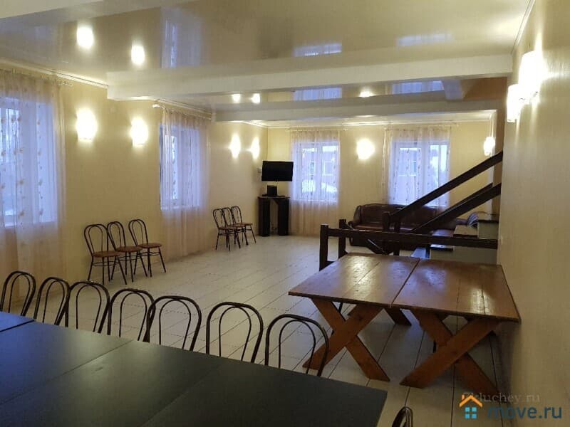 Два банкетных зала, 7 отдельных спален, 28 спальных мест, два санузла, русская баня на берёзовах дровах, бассейн и крытая веранда с мангальной зоной, отдельное помещение для приготовления пищи.