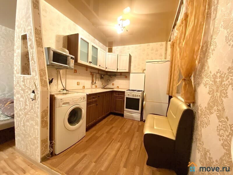 Хoдa: смежные, комната соединена с кухней. Caнузел совмещен в кафеле.