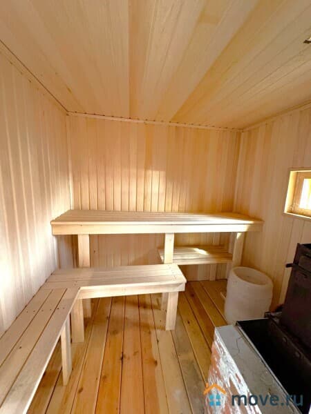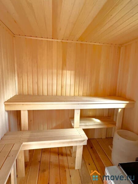 Есть отдельное новое помещение, которое можно использовать как домик, хоз. блок, склад и т.д. Обшито вагонкой. Рядом - абсолютно новая баня. За баней туалет, тоже все новое.