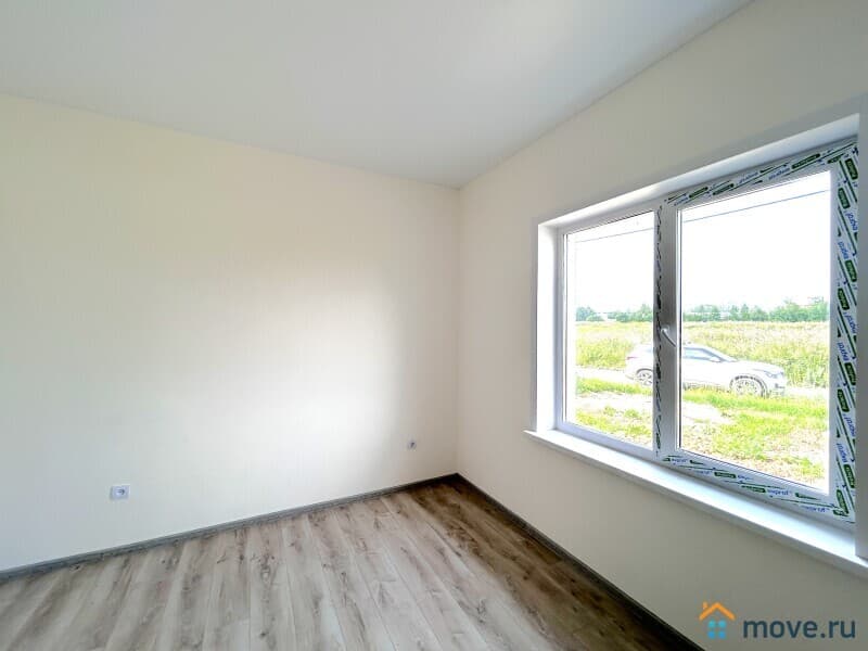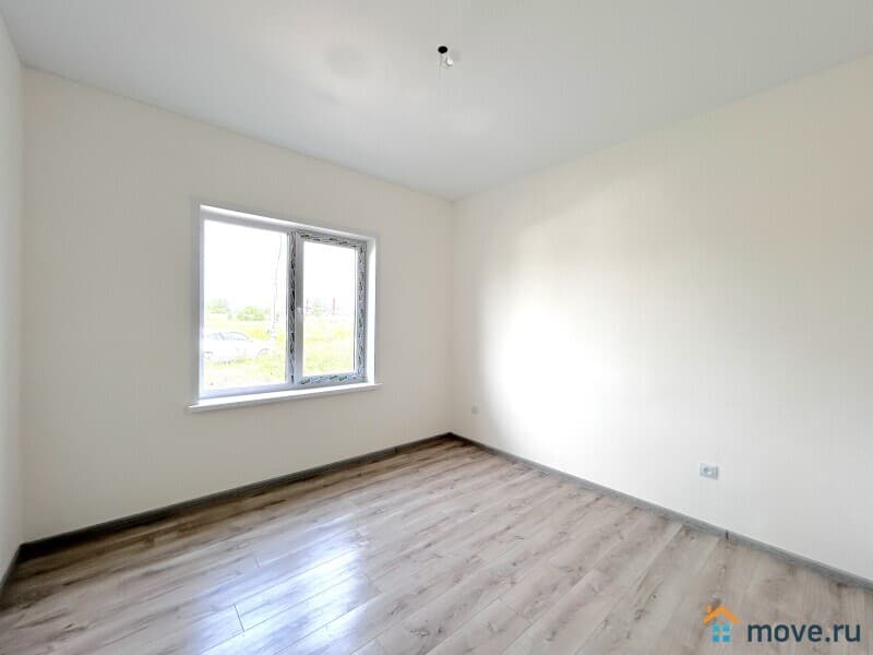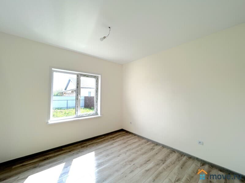 В доме имеется крытая терраса. Планировка включает четыре комнаты, в том числе три спальни, а также котельную, совмещенную с гостевым санузлом. В спальнях уложен ламинат, в остальных помещениях – керамогранит.