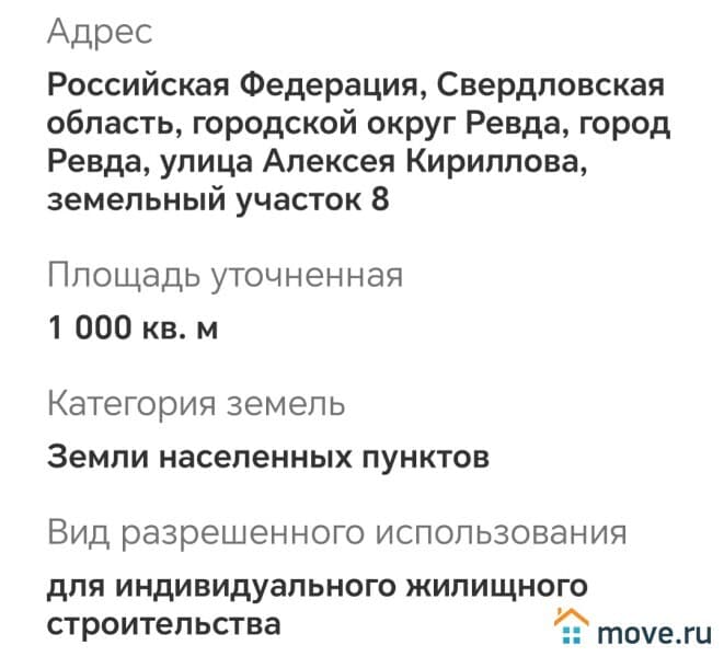 Продам земельный участок 1000 кв.м., расположен по адресу: обл. Свердловская, г.о. Ревда, улица Алексея Кириллова, земельный участок 8, кадастровый номер 66:21:0101079:3323